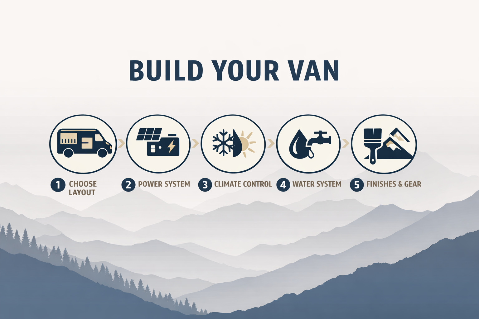 From there we help you configure power systems, climate systems, water systems, and finishes to create the perfect travel vehicle.